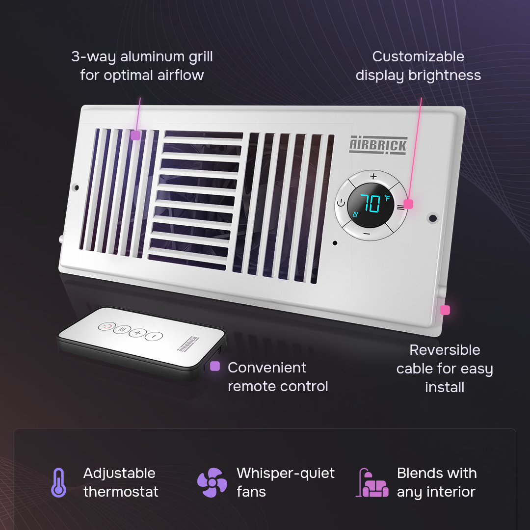 Boost your HVAC system's performance with AIRBRICK, a high-powered smart AC / Furnace booster fan that effectively addresses uneven room temperatures by distributing optimal airflow from your AC / Furnace to every part of your home.