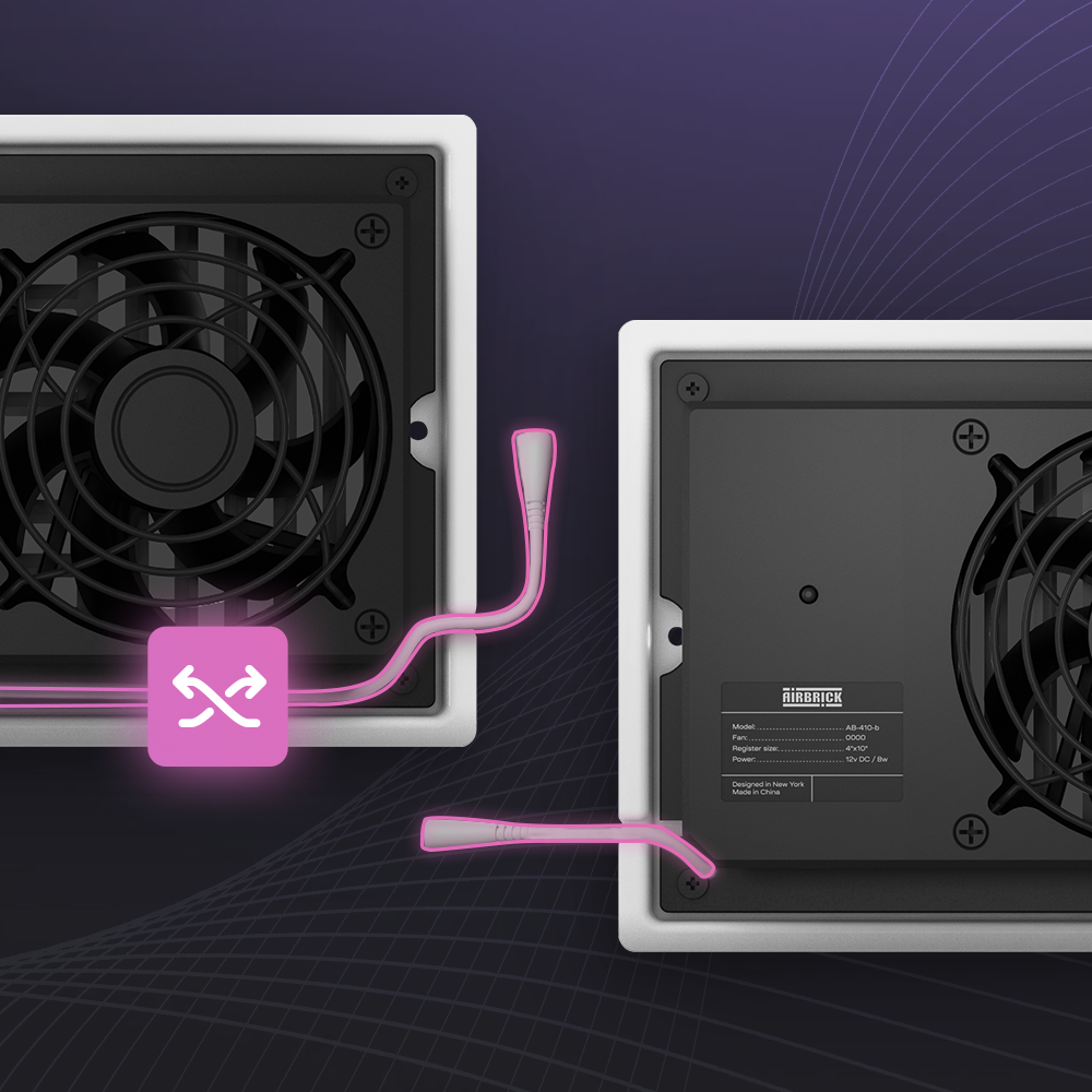 Airbrick's reversible cable is a convenient feature that allows you to easily plug in the booster fan regardless of the location of the wall outlet. The cable is designed to fit into cable grooves on both sides of the device, making installation quick and effortless. Say goodbye to the frustration of trying to plug in the cable in the right direction, and enjoy the simplicity and convenience of Airbrick's reversible cable.