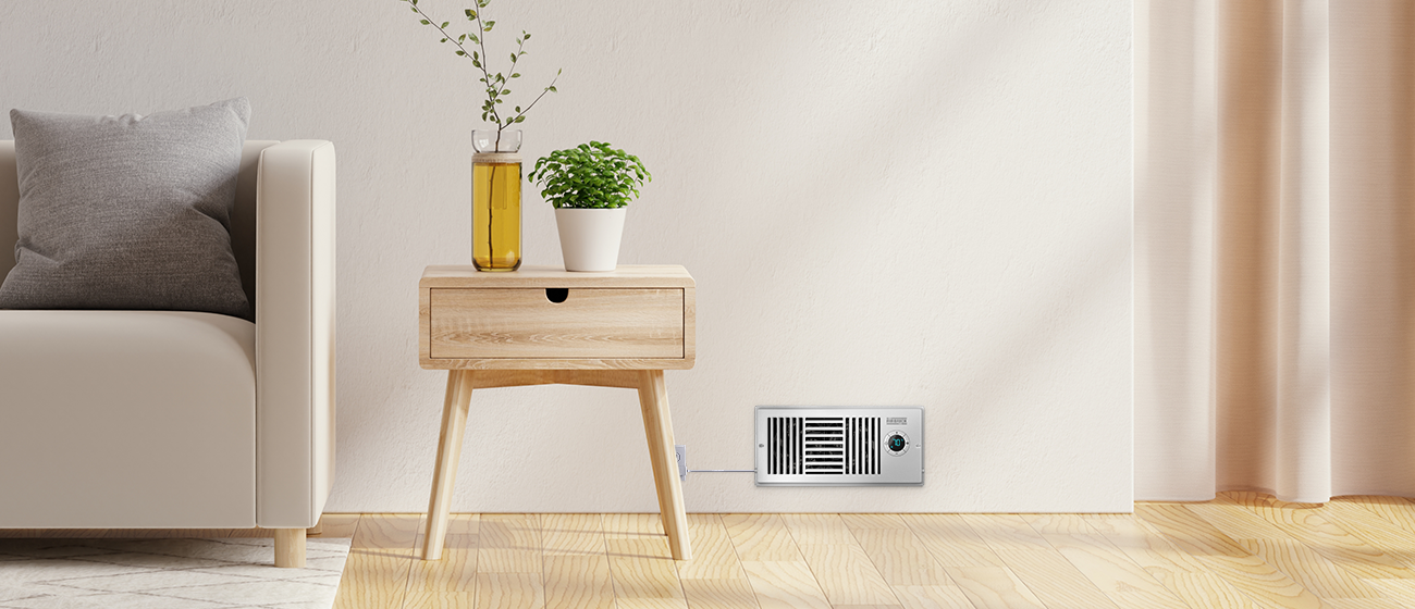 The Airbrick smart register booster fan features a three-way aluminum front grill that effectively spreads the airflow. This design optimizes airflow distribution and increases comfort in your home. The sleek and modern look of the Airbrick fits seamlessly into any room, making it a stylish and functional addition to your home's HVAC system.